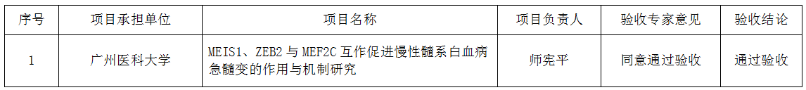 附表1:广州市科创委科学研究专项一般项目:MEIS1、ZEB2与MEF2C互作促进慢性髓系白血病急髓变的作用与机制研究的研究验收结果