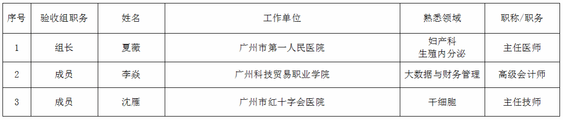 附表2:广州市科创委科学研究专项一般项目:MEIS1、ZEB2与MEF2C互作促进慢性髓系白血病急髓变的作用与机制研究的研究项目验收专家名单