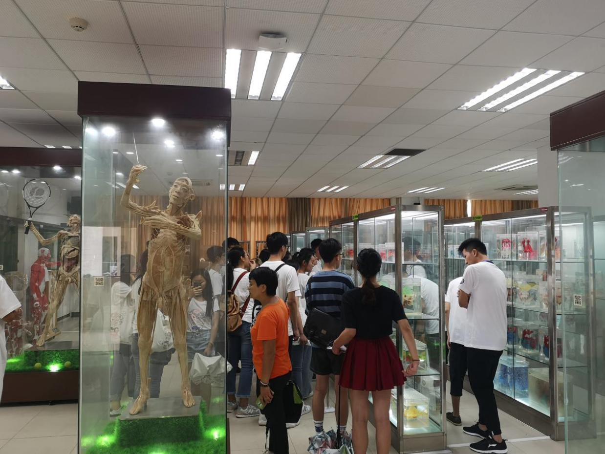 人体解剖学教研室组织了“庆祝第一个世界解剖日”主题活动,教研室宣爱国主任带领学生依次参观人体标本馆、遗体捐献纪念馆,并围绕教研室人文思政教育开展情况作介绍,引导同学们详细了解人体标本馆的科普内容、学校志愿遗体捐献活动的开展形式和意义、捐献站的发展历程等。