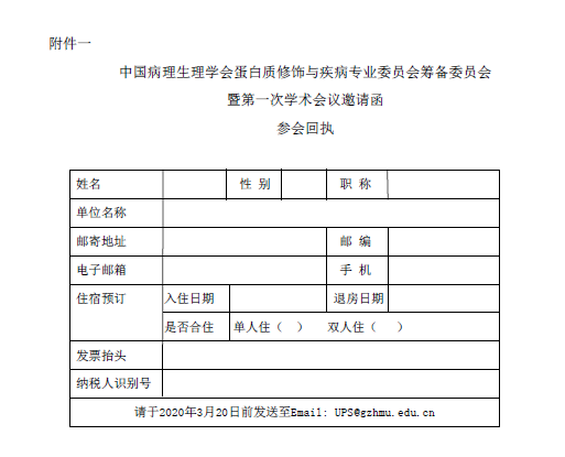 为了促进我国在蛋白质修饰、功能与疾病方面研究,为广大相关研究人员搭建更好的交流平台,在中国病理生理学会的大力支持下,我们在中国病理生理学会一级学会下面拟成立的“蛋白质修饰与疾病专业委员会(筹)”拟于2020年4月29日到5月1日在广东省广州市大学城(南国会国际会议中心酒店)召开中国病理生理学会蛋白质修饰与疾病专业委员会筹备委员会暨第一次学术会议。