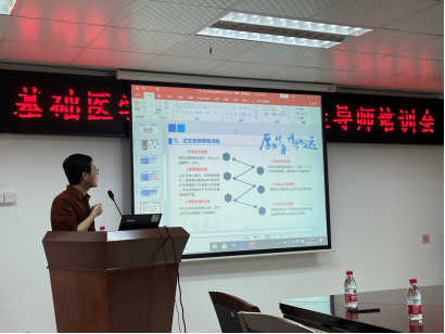 会上,冯杜副院长就导师职责,研究生培养事宜,包括研究生培养计划、开题报告、中期考核、论文答辩等内容做了详细介绍。冯杜副院长在讲话中指出“研究生导师即是研究团队的领导者,也是专业前沿的引路人、学术训练的教练员,更是科学精神的示范者”。