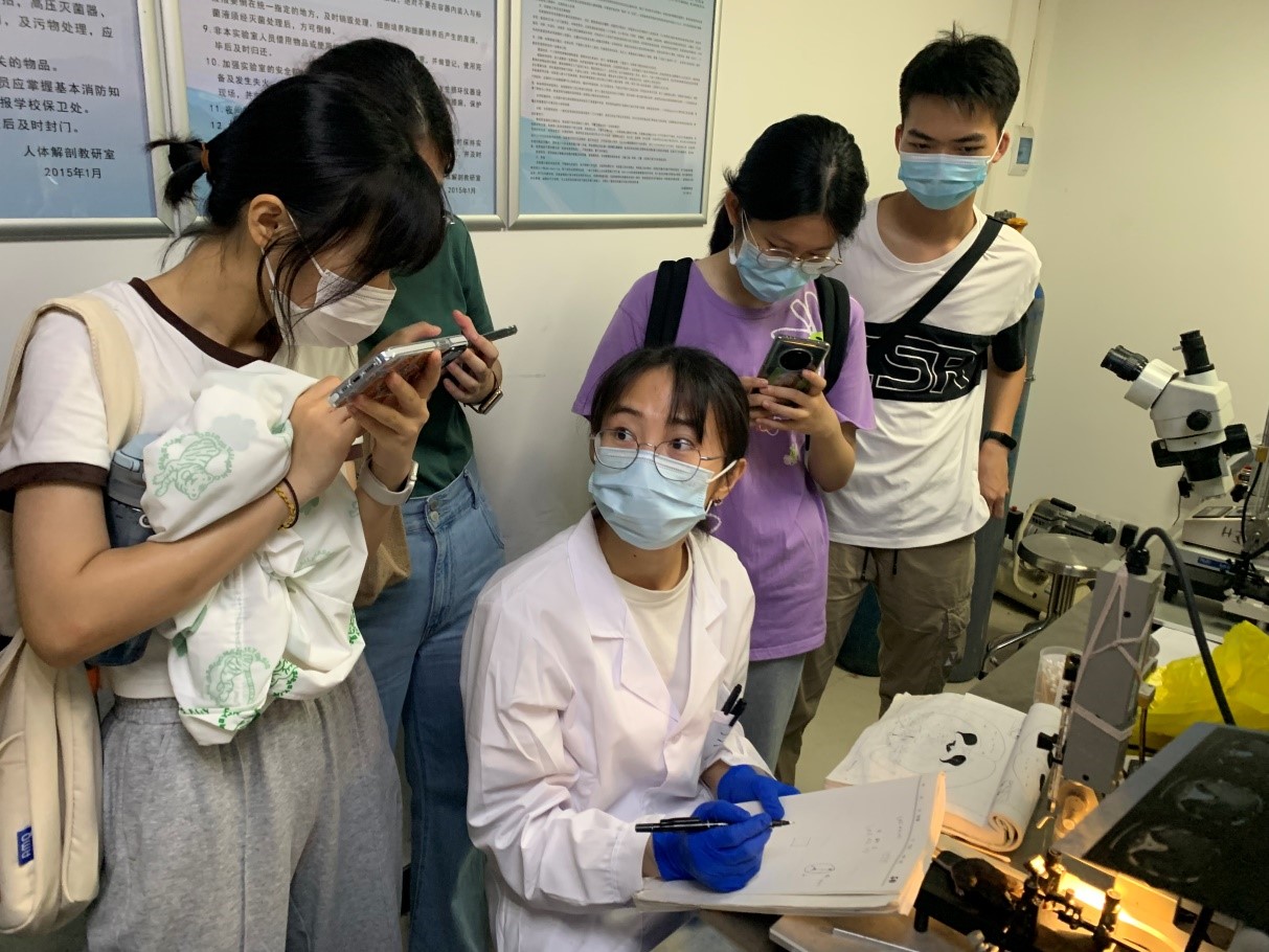 肿瘤学平台的刘铭教授介绍并带领同学们参观实验平台