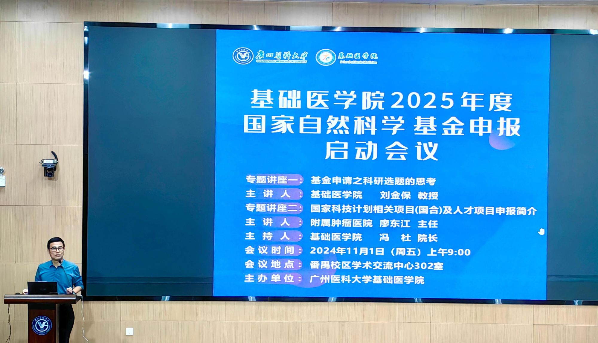 为进一步推动2025年国家自然科学基金项目申报工作,助力学校“双一流”建设,我院于11月1日上午在学校番禺校区召开2025年度国家自然科学基金申报启动会。会议邀请广东省蛋白质修饰与疾病重点实验室主任刘金保教授和附属肿瘤医院科研办主任廖东江科长做国家基金专题讲座。色色啦