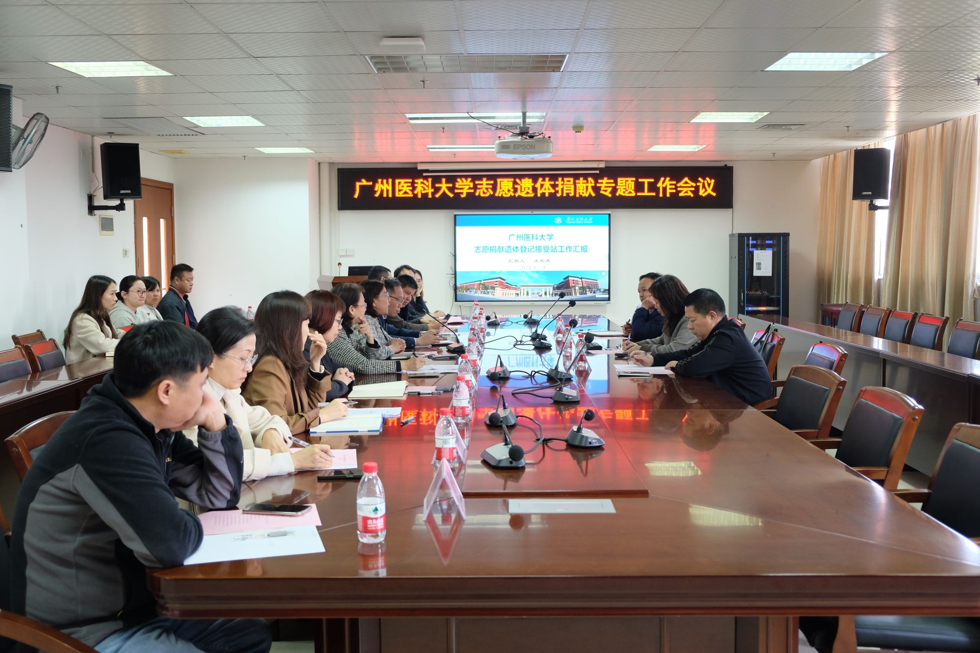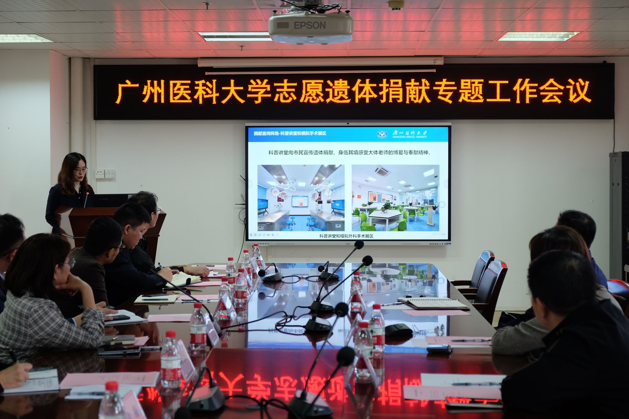 志愿遗体捐献专题工作会议在番禺校区博学楼召开,广州市红十字会党组书记、常务副会长张青蕾、副会长姜华、赈济救护部部长朱斌,色色啦