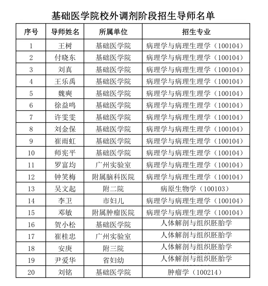我院2023年硕士研究生招生目前还有部分专业可接收调剂,欢迎考生申请调剂到我校。有关招生导师公告如下: