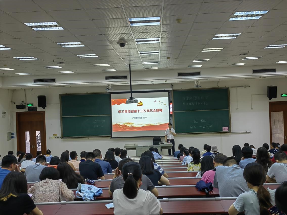 党总支召开学习贯彻省第十三次党代会精神宣讲会,特邀学校党委学习贯彻省第十三次党代会精神宣讲组成员刘涛教授作专题讲座。龙大宏书记主持,全体师生党员参加本次宣讲会。