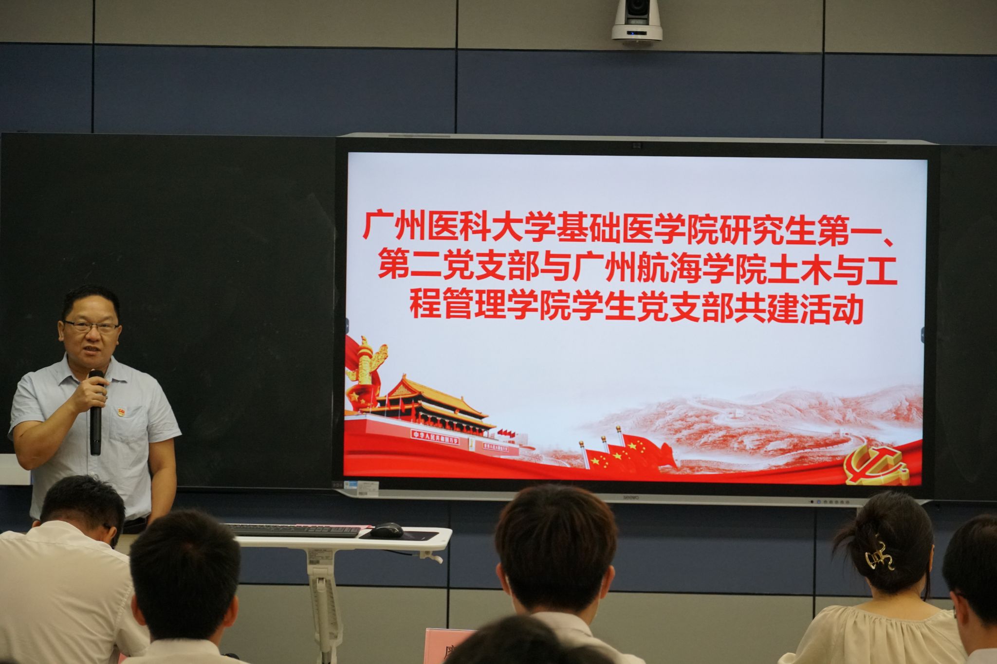 研究生第一党支部书记廖永华对广州航海学院土木与工程管理学院学生党支部一行人的到来表示热烈欢迎,他表示,本次活动是支部共建以来的第二次线下交流,希望支部交流互动活动能够以多种形式持续开展下去,发挥各自专业优势,医工结合、学科交叉、互相学习、共同进步!