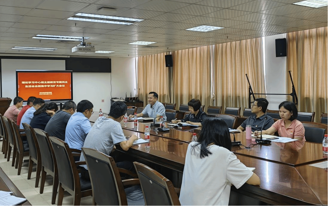 为进一步统一思想、深化认识,打牢开好学习贯彻习近平新时代中国特色社会主义思想主题教育专题民主生活会的思想基础,8月21日,我院党委召开理论学习中心组主题教育专题民主生活会会前集中学习扩大会议。会议由党委书记尹梅主持,学院党委委员、党支部书记参加会议。
