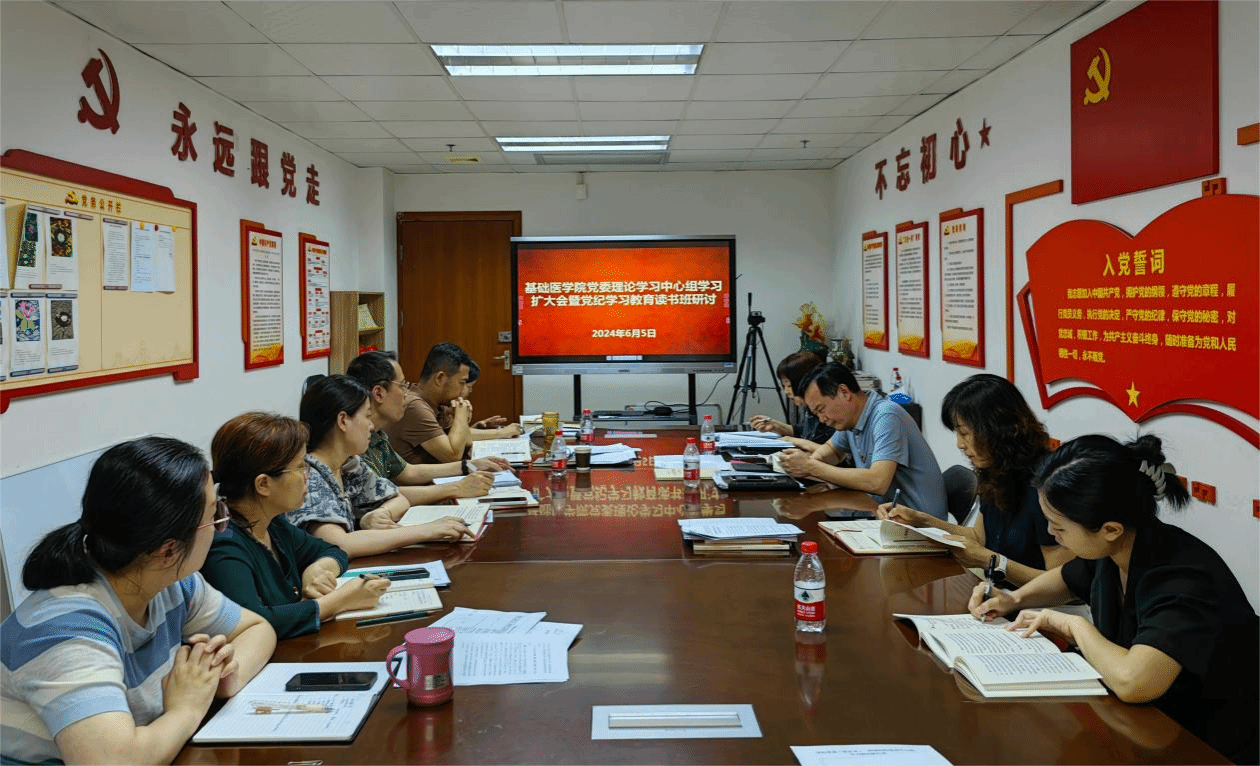 6月5日,色色啦 党委召开理论学习中心组学习扩大会暨党纪学习教育读书班集体学习研讨会,认真学习领会习近平总书记关于党的自我革命的重要思想,深入学习《中国共产党纪律处分条例》第二编分则第六、七、八章,紧扣党的政治纪律、组织纪律、廉洁纪律进行研讨,有序推进党纪学习教育走深走实。会议由学院党委书记尹梅主持,学院党委理论学习中心组成员、各办公室主任和学生党支部书记参加会议。