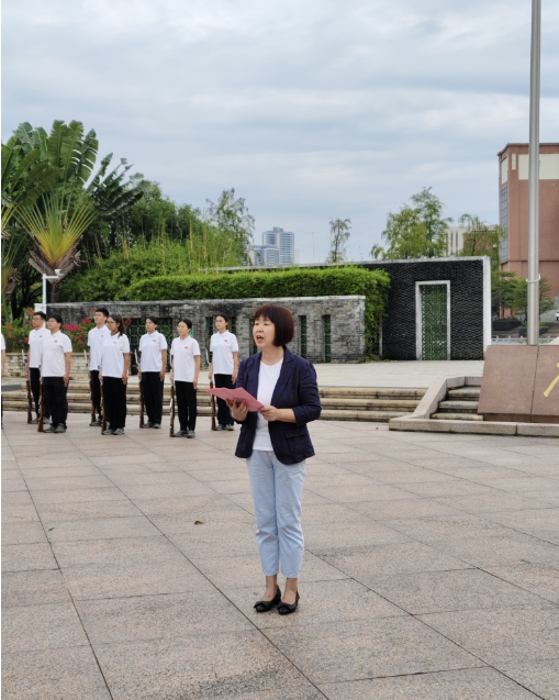 升旗仪式结束后,学院党委书记尹梅发表讲话。她回望了党和新中国的光辉历程,强调了红色政权、新中国以及我们今天幸福生活的来之不易。结合赵醒村校长在2024年9月开学典礼暨教师节表彰大会上的讲话,她对色色啦