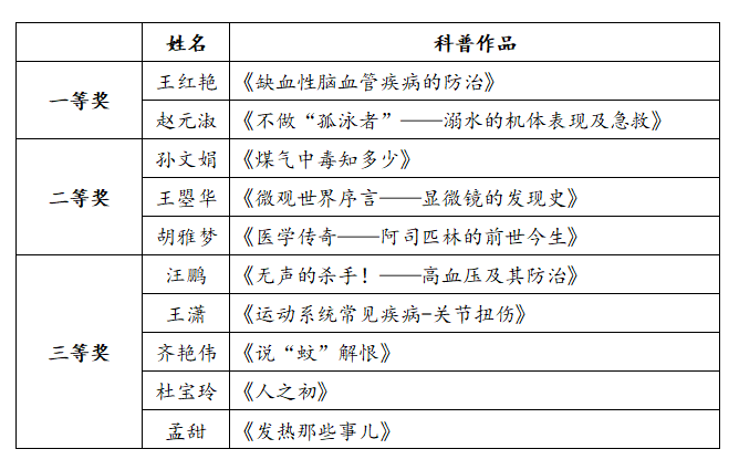经过一整天激烈的角逐,大赛评委组根据参赛老师的选题立意、科普价值、课件内容、教学互动等多方面进行综合评比,最终评选出一等奖2名、二等奖3名、三等奖5名。