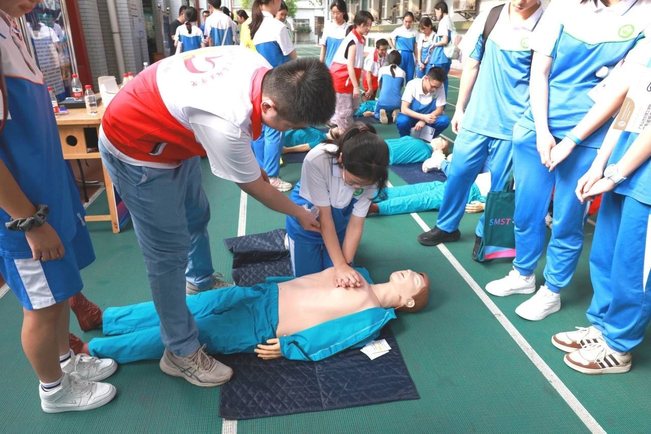 系副主任张根水教授带领由具备临床背景的研究生组成的科普团队,为该校师生开展CPR心肺复苏术急救培训。作为本次科技节的核心实践项目,活动旨在通过“理论+实训”双模块教学,系统教授心肺复苏操作流程及突发状况应对等关键技能,以有效提升中学生急救处置能力。