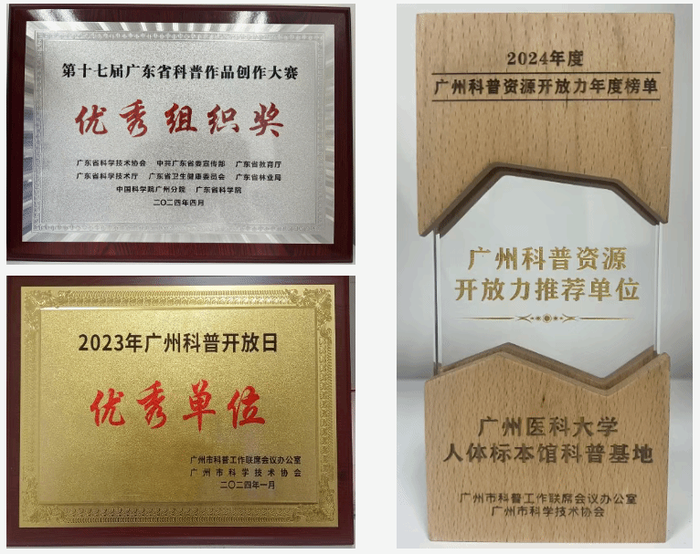 人体标本馆建于2014年,是一座集教学、科研、实验、科普教育为一体的,揭示生命活动与人体健康的生命科学馆。科普总展示面积约为960平方米,场馆每次可接待参观人数120人,每年可接待5000人以上。人体标本馆在2019年被评为“广州市第十二批科普基地”;在2023年被评为“广州科普开放日优秀单位”;在2024年被评为“广东省科普教育基地”和“广州科普资源开放力推荐单位”。