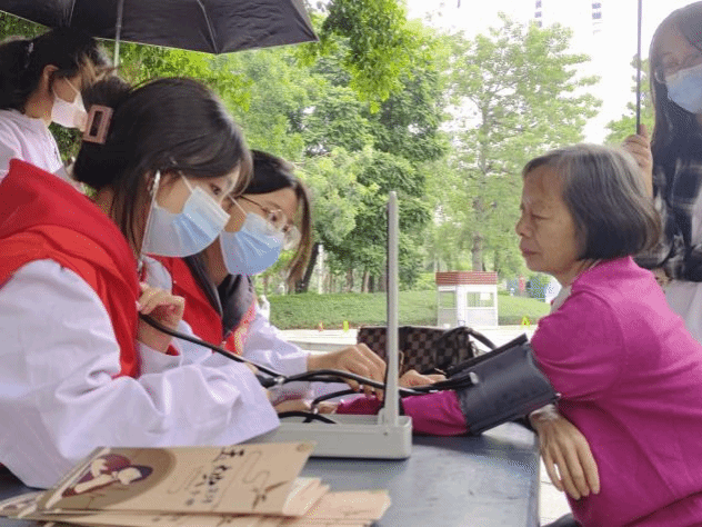 跟随着志愿者的引导,市民来到测血压的摊位测量血压。志愿者告知其血压情况并根据测量结果对市民们的生活习惯提出建议,如改变饮食习惯、运动习惯等。由此,市民们在对自己的健康状况有进一步了解的同时也收获了科学的生活指引。