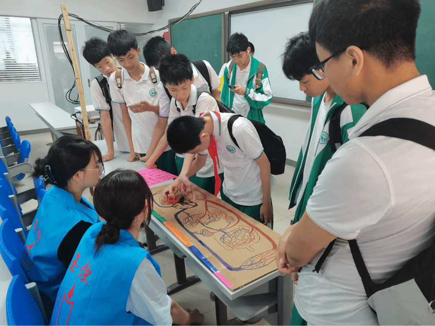 为了让这次科普活动更加深入人心,玉烛遗体捐献志愿者协会准备了“心脏跑道冒险”“抽抽乐”和“血液循环公路”三个小游戏,同学们在工作人员的指导下有序参与其中。