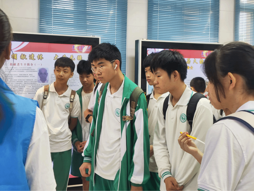在遗体捐献纪念馆中,通过科普人员详细地讲解,同学们更深切地感受到遗体捐献志愿者无私奉献的精神,并对他们表示尊重和敬佩。