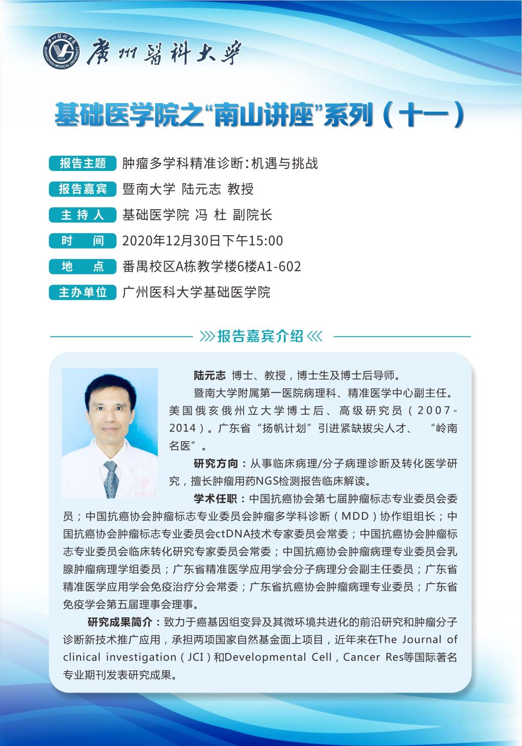 学术讲座--肿瘤多学科精准诊断:机遇与挑战